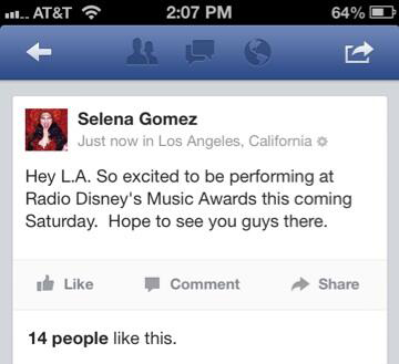 PT.: Hey Los Angeles (L.A.) estou muito ansiosa para performar no “Radio Disney Music Awards” nesse sábado. Espero ver vocês lá.